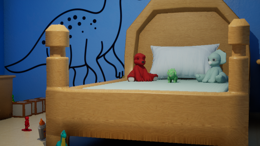 ToyZaurs! is a 3D action game with a chibi visual style, set in a child’s bedroom. Players control dinosaur toys as they battle corrupted toys and solve a variety of puzzles to progress. The game features fast-paced combat, diverse enemy types, mini-games, and a unique transformation system that lets players switch forms and abilities, combining action and strategy to create a fun and engaging gameplay experience.